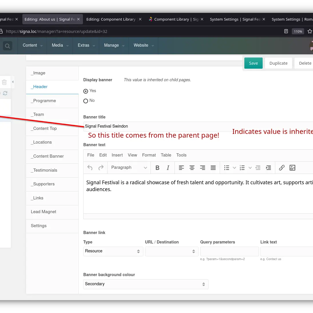 The top section of each page. You can edit the content via the TVs. Should be pretty straight-forward, except for 1 thing: