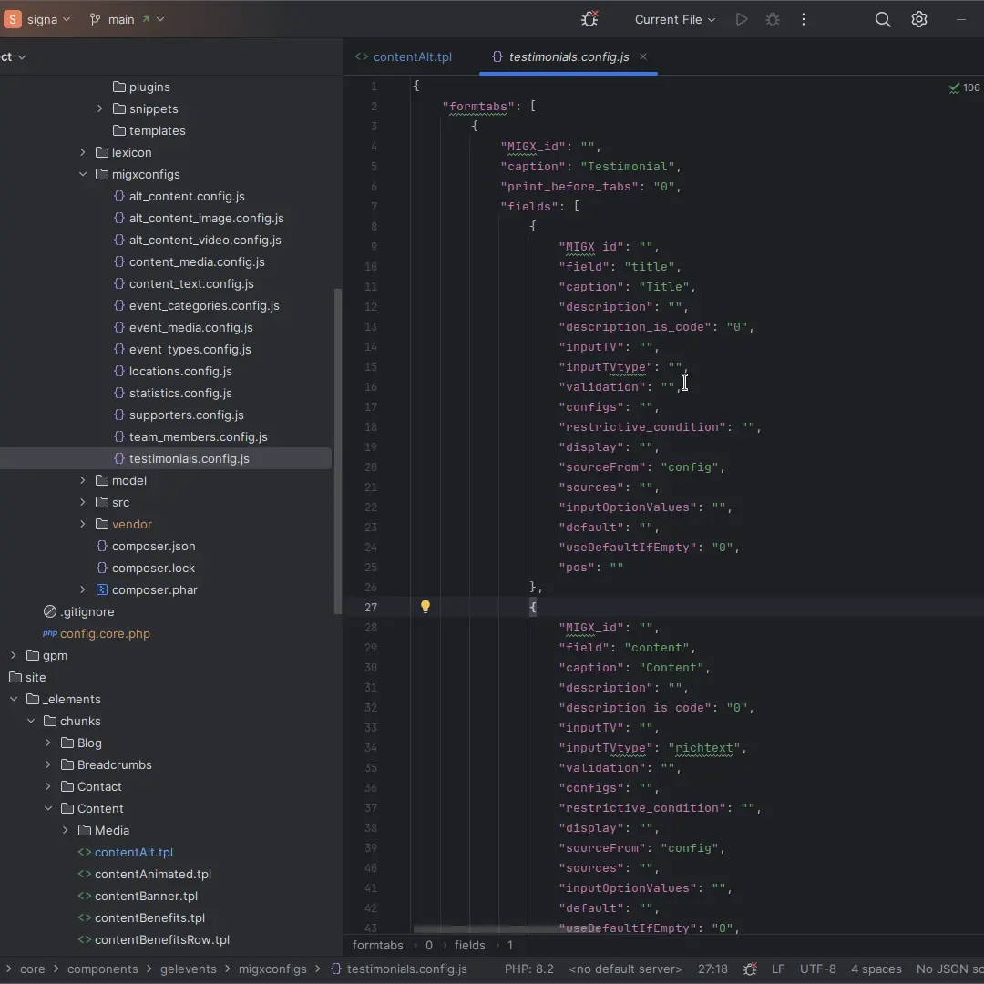 This is a bit of a technical detour from the usual approach. All functionality in this grid is moved to JSON files, instead of being managed through the MIGX UI itself. I've been doing this for years. It really speeds things up and it makes things much easier to reuse.