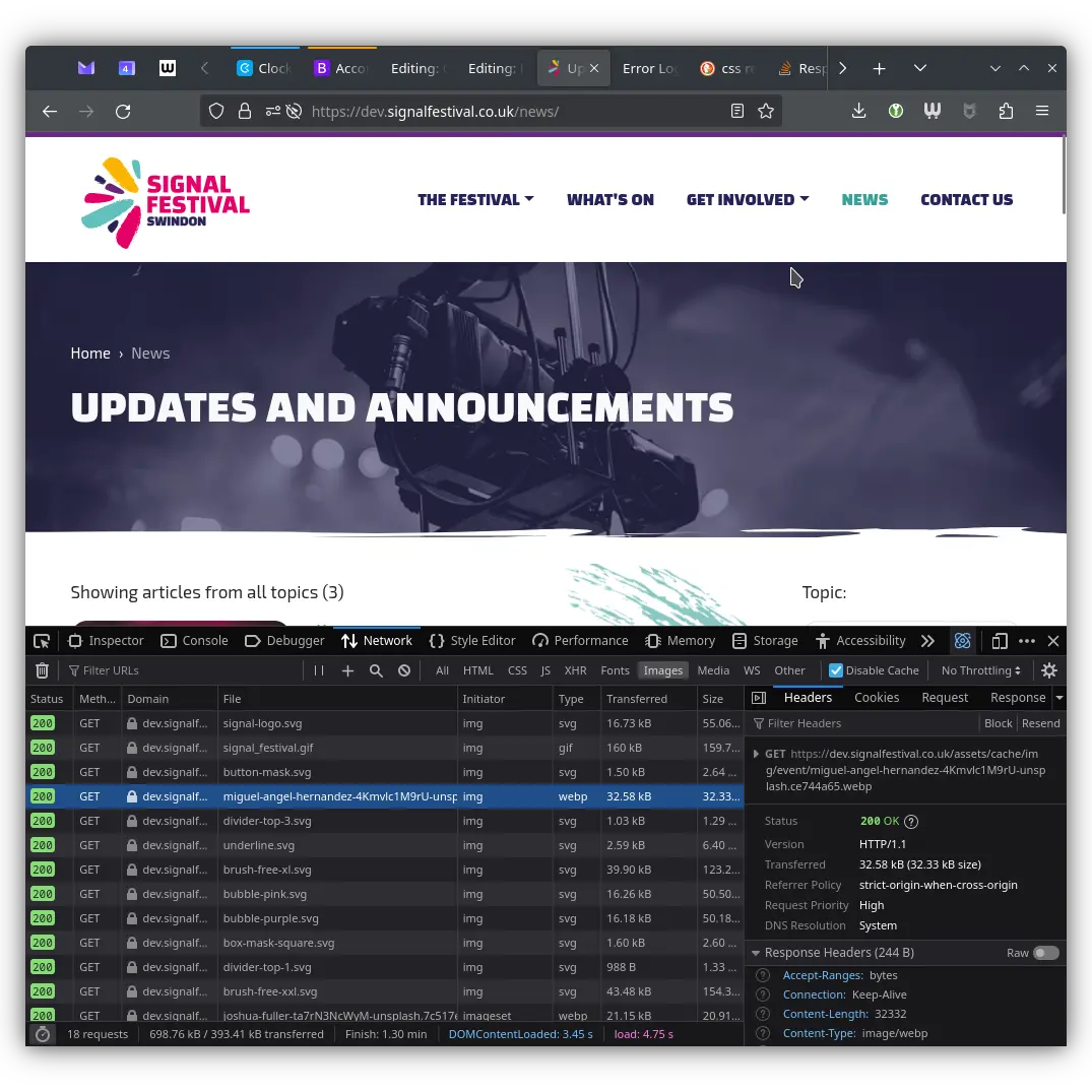 If the Image TVs are set, then a header background is activated for that page. This image is loaded via CSS, and uses media sources to determine which image to load, based on viewport size and display pixel density. Especially on mobile, this saves visitors from having to download ginormous image files.
