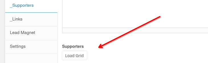 Some templates have a second section of alternating content. Below here, there are only Testimonials, Supporters and Links sections, which are pretty self-explanatory I think. Testimonials and Supporters are global content, and Links point to other resources. You can select available Testimonials and Links with a TV.